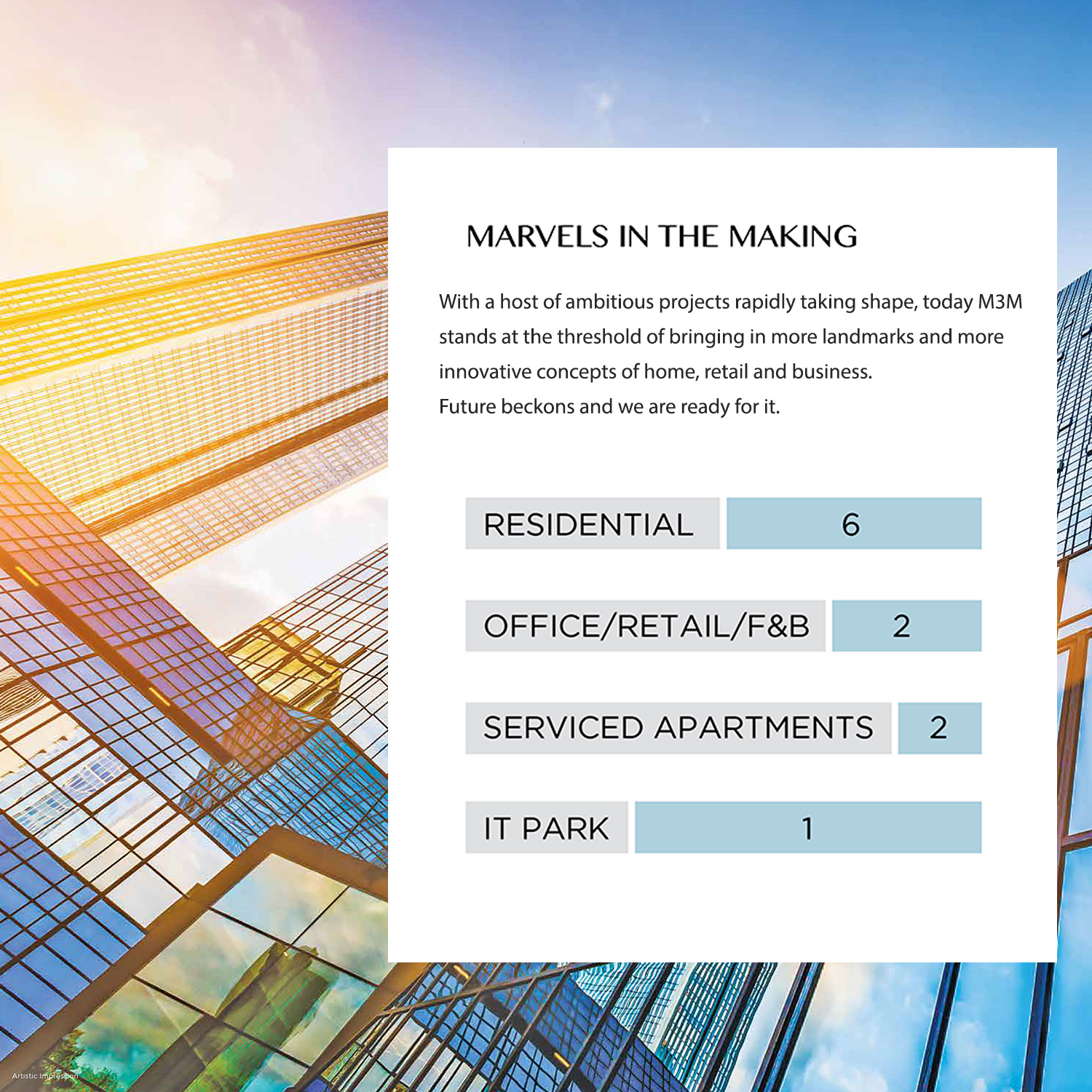 Disclaimer:- Welcome to M3M Avenue (“Website”). The contents of this website are for general informational purposes only. By using or accessing this Website and/or the hyperlinks embedded/ mentioned in the Website you agree to abide by the terms and conditions, as set forth herein and as contained in the Website without any qualification or limitation. In the event you do not accept/ agree to the terms of this Disclaimer, you are requested not to use the Website or download materials from the Website. Every endeavor has been made to keep the information updated. However, we make no representations or warranties of any kind, express or implied, about the completeness, accuracy, reliability, suitability or availability with respect to the Website or the information, products, services, or related graphics contained in the Website for any purpose. The Website and all its content are provided on an “as is” and “as available” basis and is intended for informational purposes only. No information given under this Website shall be treated as a warranty or representation by us. Your use of the Website is solely at your own risk. This Website is for guidance only. It does not constitute part of an offer or contract. The contents, including design and specifications are subject to change without prior notice. Computer generated images are the artist’s impression and are an indicative of the actual designs. By using and/or accessing this Website, you, the viewer/user acknowledge that the information including any material/ documents (such as brochures and marketing collaterals) on this Website are solely for informational purposes and you have not relied on this information for making any booking/ purchase/ intention to purchase/ invest in any project(s) of M3M Avenue and/or its affiliates. Nothing herein shall be construed as any invitation, or offer for investment or deposit within the terms of the applicable law (as amended from time to time) including without limitation SEBI Act, 1992, Companies Act 2013 etc. and we shall not be liable for any consequence of any action taken by the viewer relying on such material/ information on this Website. The particulars contained on the Website mention details of Projects/ developments undertaken by M3M Avenue and/or its affiliates. The contents are being modified in terms of the stipulations/ recommendations under the Real Estate Regulation Act, 2016 and Rules made thereunder (“RERA”) and accordingly may not be fully in line thereof as of date. Use of information shall be governed by Indian laws, RERA; subject to jurisdiction of Competent Authority under RERA, courts at Gurugram/ Haryana India. You are further advised to verify all the details, including area, amenities, services, terms of sales and payments and other relevant terms independently with the sales team independently, subject to prior appointment during working hours and speak to one of our sales staff, prior to concluding any decision for buying any unit(s) in the said project. In no event shall M3M Avenue, its affiliates, employees, directors and/or officers be made liable for any claim as a result of any inaccuracies in the information provided in this Website, though all efforts have to be made to ensure accuracy and under no circumstances shall we be liable for any expense, loss or damage including, without limitation, indirect or consequential loss or damage, or any expense, whatsoever arising from use, or loss of use, of data, arising out of or in connection with the use of this Website.